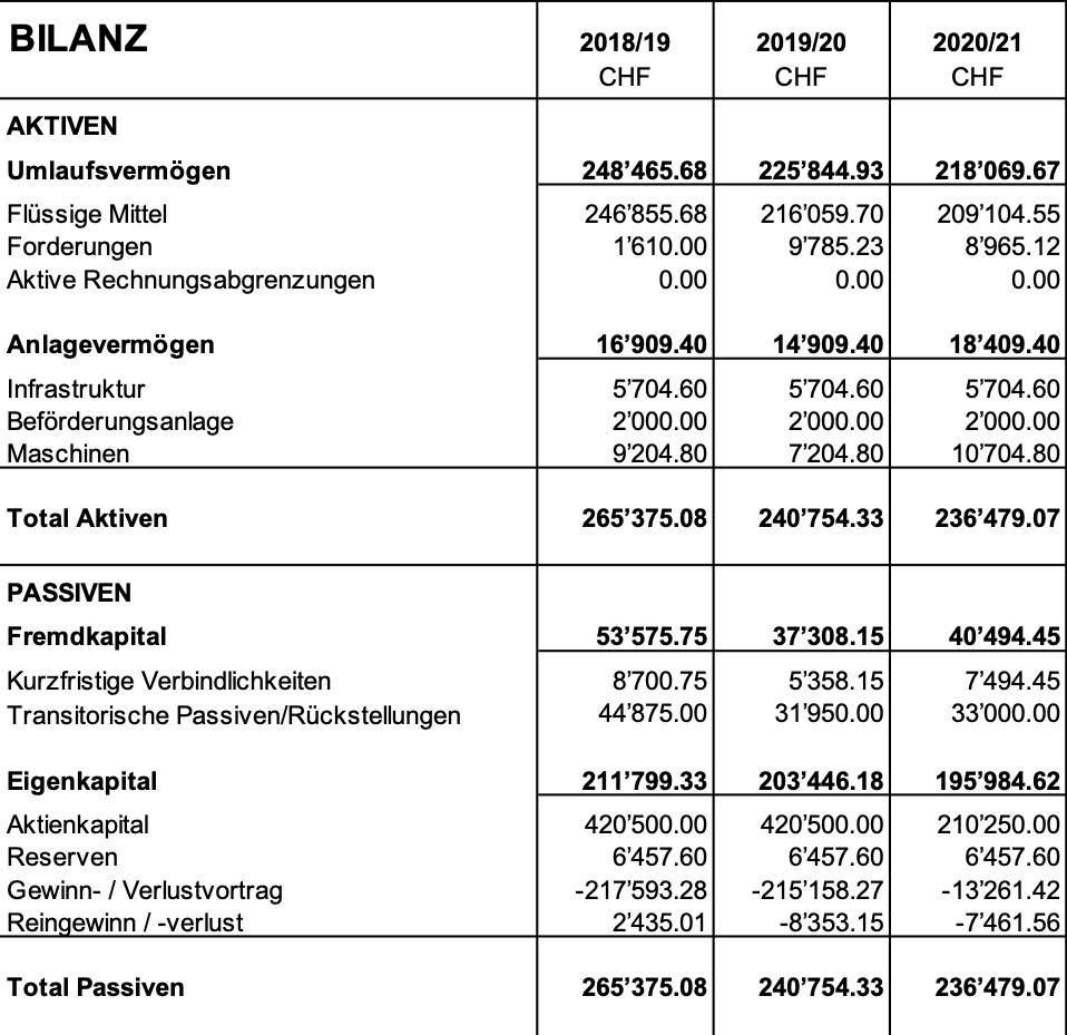 Weniger Betriebstage mit Gästen, trotzdem eine gute Betriebsführung mit motivierten Mitarbeitenden, die selbst vor aufwändigen Unterhalts- und Revisionsarbeiten nicht zurückschreckten und die Zuversicht, dass wir sowohl personell als auch von unserer Liftinfrastruktur her für den nächsten Winter bereit sind, lassen uns verhalten optimistisch in die nähere Zukunft blicken. Dementsprechend wollen wir den aufgelaufenen Jahresverlust auch nicht überbewerten. Wir sind weiterhin überzeugt, dass im SchneeSelital noch einiges an Potenzial auf Abruf bereit ist, um einen ganzen Haufen an Wintersportgästen bei uns unendlich glücklich zu machen. Aus diesem Grund hoffen wir auch darauf, dass die Behörden uns möglichst rasch einen verbindlichen Rahmen für den Betrieb in der kommenden Wintersaison präsentieren. Diese Sicherheit nützt uns genauso wie unseren Gästen.
